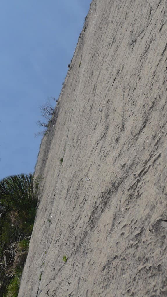 - Roccia: Arenaria appoggiata compatta e solida, lavorata a tacche, buchetti e fessure